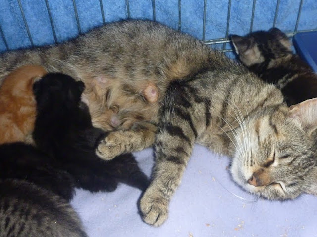 I woke from my nap just after four and checked my emails, though there's rarely anything on a Sunday afternoon. However, fifteen minutes earlier I'd been sent an email from someone at Moorside who had a friend who had five newly born but abandoned kittens in his garden. I rang Carol. I went to Moorside. I took the kittens to Carol's.